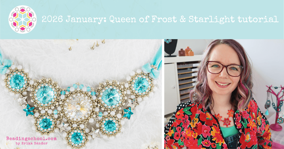 Queen of Frost & Starlight tutorial by Chloe is the January jewel of the Beader’s Calendar 2026 by Beadingschool. This necklace brings celestial elegance and icy brilliance to classic shapes—timeless, radiant, and unmistakably royal for the season.
